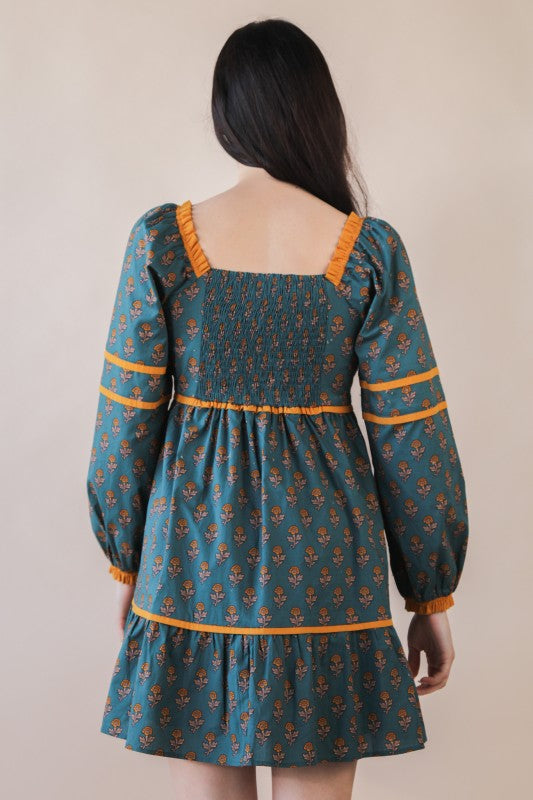Printed Ruffle Detail Mini Dress