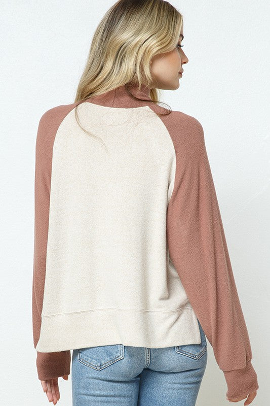 Brushed Contrast Sleeve Top