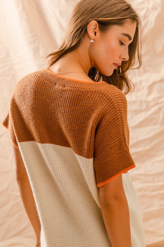 Colorblock Yoke VNeck SS Sweater Top